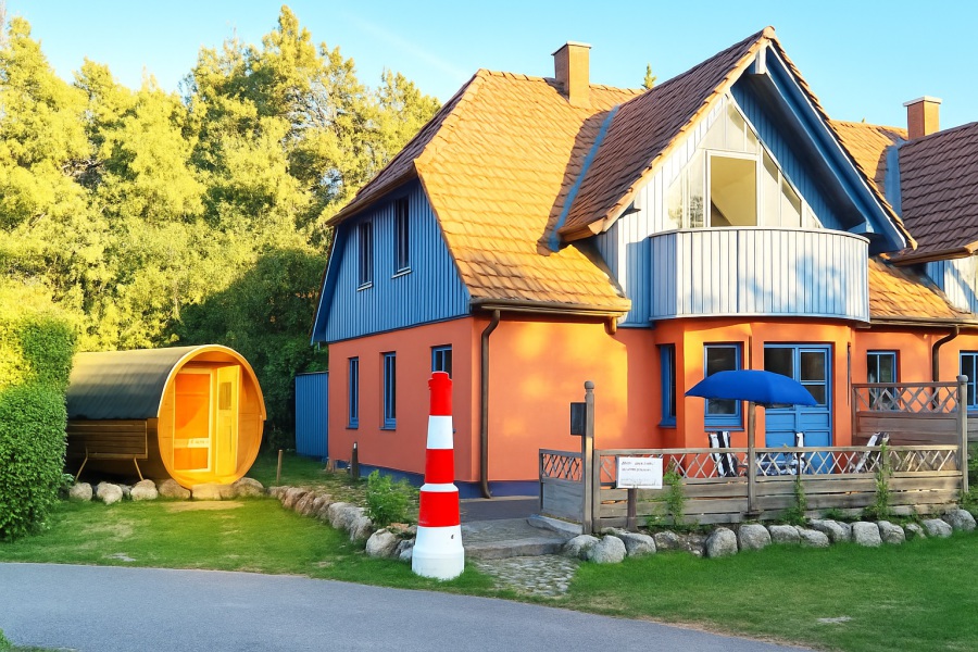 Die Ferienwohnung Am Leuchtfeuer 11 ist mit drei Sternen klassifiziert und bietet eine angenehme und komfortable Unterkunft. Neu in unserem Angebot ist die Fass-Sauna, die gegen einen Aufpreis von lediglich 10 Euro pro Saunagang genutzt werden kann. Für Radfahrer steht ein gesicherter Fahrradschuppen zur Verfügung, ideal für E-Bikes. Zu den Annehmlichkeiten der Wohnung gehört außerdem ein Holzofen, der inklusive Brennholz bereitgestellt wird, sowie ein Großbild-Fernseher mit Zugang zu Streaming-Diensten wie Netflix, Disney+ und RTL+.